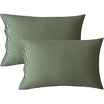 Amazon Com Jellymoni Green 100 Washed Cotton Standard Pillowcases Set 2 Pack Luxury Soft Breathable Pillow Covers With Button Closure Pillows Are Not Included Home Kitchen